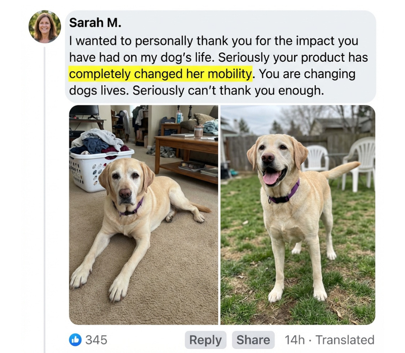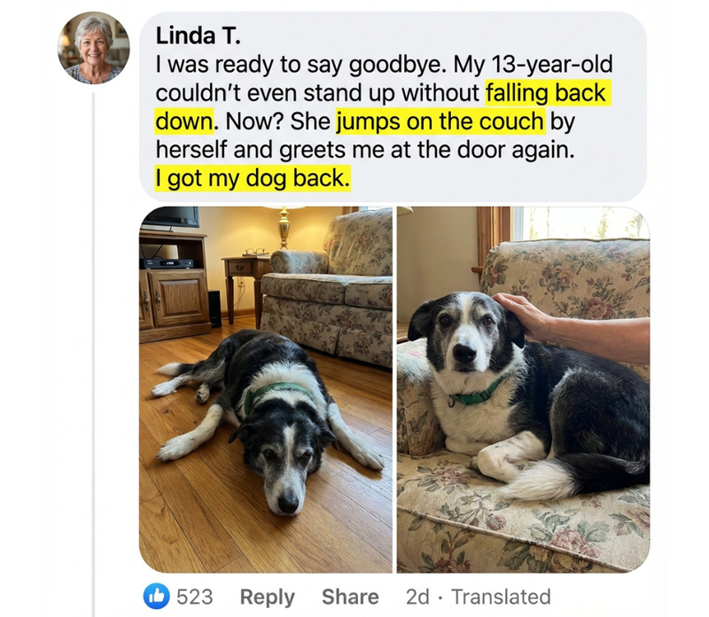 I was skeptical at first, but after just 2 weeks I noticed Rosie was greeting me at the door again. By week 4, she was walking around the house like she used to. By week 6, she jumped on the couch for the first time in months. I wish I had found this sooner.
