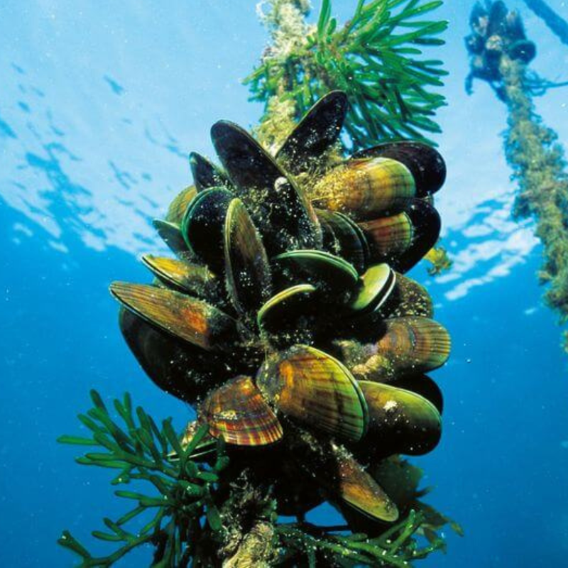The Green Lipped Mussel (Perna canaliculus) is endemic to New Zealand. It cannot be farmed or replicated anywhere else. The mussels grow in the Marlborough Sounds - fed by nutrient-rich currents flowing directly from Antarctica. Each mussel filters 360 liters of this pristine seawater every single day.