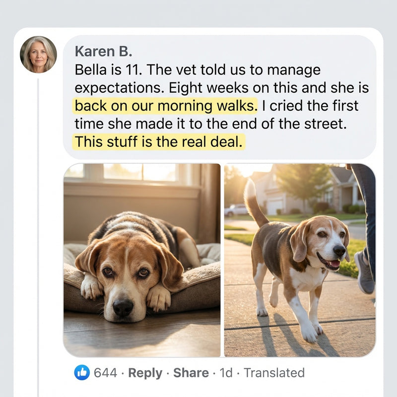 I was skeptical at first, but after just 2 weeks I noticed Rosie was greeting me at the door again. By week 4, she was walking around the house like she used to. By week 6, she jumped on the couch for the first time in months. I wish I had found this sooner.